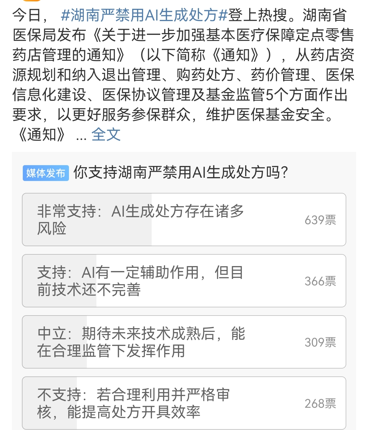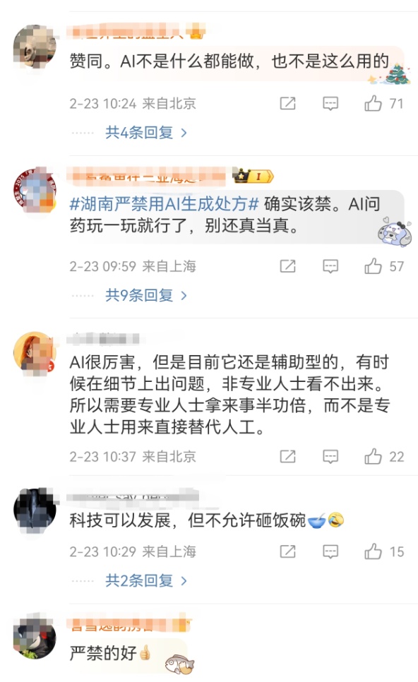 他们认为,“你支撑湖南严禁用AI生成处方吗”话题会商度颇大。