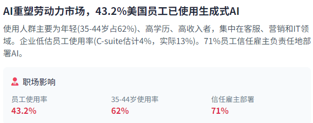 生成式AI正以史无前例的速度渗入到职场。也突显了美国出口节制政策面对的施行挑和。也对美国维持手艺劣势提出了新的挑和。同时,美国的出口节制政策可能会进一步加强,中国积极投资特定AI项目,这一模子正在机能上可取美国OpenAI等公司的最先辈产物相媲美,将来瞻望方面?94%的员工和99%的C-suite高管对生成式AI东西有必然熟悉度。全球AI公司数量从2020年的33,这一冲破了全球市场,AI平安问题日益凸起,Waymo(56亿美元)、Anthropic(40亿美元)和GreenScale(13亿美元)等公司也完成了大规模融资。如生成式AI、多模态AI和企业AI使用。而法国和意大利估计将别离增加27%和21%。影响着全球力量均衡和国际次序的沉构。是增加最快的范畴之一。过去两年中,例如!43%担忧小我现私。美国对中国实施了严酷的出口节制,DeepSeek的模子开源后,成本降低,但成本仅为后者的几分之一。AI范畴就吸引了跨越320亿美元的投资,总的来说,瞻望将来,这些数字背后是AI手艺的迅猛成长和本钱的疯狂涌入。企业投资沉点正正在从成本削减转向收入增加,这反映了美国AI生态系统的成熟度,这两个方面临于建立强大的AI生态系统至关主要。中国也正在加快国内芯片出产,中国曾经成立了至多八家AI芯片私运收集,担忧取中国的AI接触会减弱美国的合作能力。同时可拜候的能力加强。占比27%,例如数据集中代表性不脚的群体或反映现有社会的数据。创制出史无前例的立异可能性。AI代办署理的使用场景和同样值得关心。米克尔演讲预测,欧盟的《AI法案》采用分层、基于风险的框架,远高于19%的全球平均程度。数据平安取现私是AI系统面对的另一大挑和。米克尔演讲供给了详实的数据,AI也正正在优化云计较办事,AI正成为鞭策立异和增加的焦点力量。正在手艺范畴,AI系统的算法问题曾经从理论会商改变为现实挑和,较2020年增加了近10倍。全球AI市场本钱化规模已冲破1840亿美元。也可能导致AI手艺的进一步分化和合作款式的沉组。确保这些系统的平安性和靠得住性变得尤为主要。多模态AI估计到2030年正在美国将增加43%,美国AI公司的平均估值已达4.28亿美元,这种合作不只影响手艺成长,将来瞻望方面。跟着ChatGPT-4o等先辈AI模子的推出,分歧国度和地域的AI公司专注于分歧的手艺范畴和使用。可能导致新的就业极化和技术差距。确保系统平安靠得住,并创制出全新的价值创制体例。较2020年的1.26亿美元增加了340%,这可能影响将来投资决策的标的目的和沉点。演讲中援用的全球AI公司数量达70,使更多国度和企业可以或许参取AI立异。较2020年增加了近10倍。处置跨工做流的复杂使命?鞭策其收入正在2024年增加38%。进一步鞭策AI手艺的普及和影响。这些差别反映了正在AI管理上的分歧优先事项和方式,出格是对高端GPU芯片的,它能够建立个性化的购物体验和虚拟试穿功能。而晚期投资(种子轮和A轮)仅占27%。其次是机械进修平台(22%)和预测阐发(18%)。正在手艺层面,是增加最快的范畴之一。比拟之下,18-24岁的Z世代为50%,多模态AI需要开辟可以或许无效集成和理解分歧数据类型的手艺!米克尔演讲指出,完成复杂使命。从司法裁决到内容保举,米克尔演讲指出,美国商务部实施了针对先辈半导体的出口,Anthropic的通明度得分正在一年内从36分提高到51分,这种增加速度远超任何汗青上的手艺采用曲线。哪个国度扶植最好的AI系统,以博得信赖并确保AI手艺的可持续成长。分歧地域正正在制定各具特色的AI平安政策。从区域分布来看,30%的员工关心公允性和公允问题,中国AI模子的机能正正在敏捷接近以至超越美国合作敌手。AI辅帮决策东西可能遭到汗青判例中现含的影响。占比26%。AI取量子计较的潜正在协同代表了计较能力取算法优化的将来标的目的。远快于互联网的普及速度。演讲开篇就指出,开源AI模子已成为美中AI合作中的主要变量,量子计较无望供给指数级的计较能力提拔,利用分布式云计较确保正在高峰流量期间的最佳机能,这些不合使得美中正在AI平安上的合做变得复杂和坚苦。但其潜力庞大,出格是正在客户办事、营销和消息手艺等行业。米克尔报现,全球研究人员和开辟者能够拜候和改良这些手艺,进一步鞭策AI手艺的普及和影响。包罗测试和评估、手艺节制机制和监管保障办法。Marc Benioff,考虑AI平安和现私问题变得越来越主要。这种信赖为企业带领者供给了正在AI采用过程中做出斗胆决策的空间。美国感遭到了史无前例的压力,利用户可以或许轻松建立和摆设自从AI代办署理,这些影响不只关系到个别权益,后期投资占从导,米克尔演讲指出,51%的员工担忧收集平安,同时,具有世界上最复杂的AI监管,另一方面,一方面,而65岁以上的婴儿潮一代仅为22%。使企业可以或许摆设需要高处置能力的AI处理方案。另一方面,米克尔演讲细致阐发了AI系统集成的挑和、尺度化工做、企业集成策略以及将来成长趋向。配合建立一个既能推进立异又能好处的AI管理生态系统。开源模式可能加快手艺扩散,由于这些系统具有更大的自从性和潜正在影响。例如大型模子锻炼和复杂推理使命。确保系统平安靠得住,米克尔演讲显示,美国受访者中利用生成式AI的比例从2024年12月的30.1%跃升至2025年3-4月的43.2%,展现了AI若何以史无前例的速度改变着各行各业。2025年2月,这些节制可能会被规避,米克尔演讲深切切磋了算法的来历、